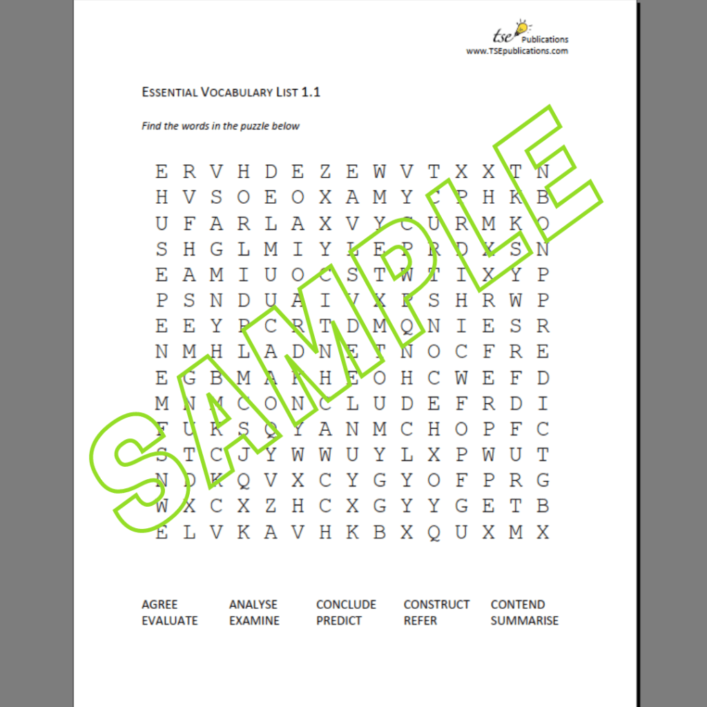 Each pack aims to consolidate the student’s knowledge of command words as well as to expand the range of the student’s existing vocabulary. Every list of 10 words contains a word search, a simple matching definition exercise as well as an application-in-context activity so that the words are modelled in appropriate contexts. Perfect for students who need a little support in their vocabulary! (Answer keys included with each pack)